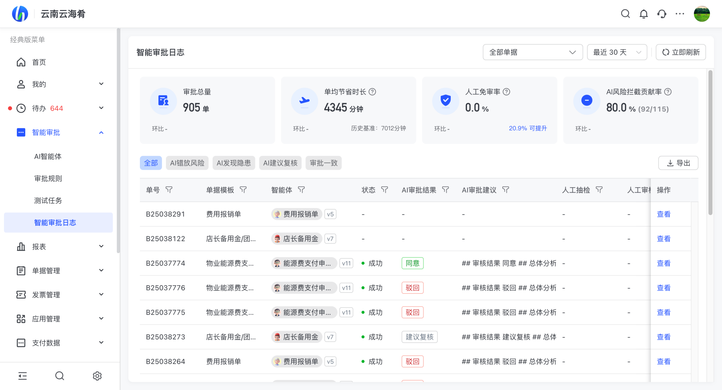 落地后,云海肴的財務(wù)審批成效顯著:“報銷比上菜還快” 從口號變?yōu)楝F(xiàn)實,財務(wù)團隊從 “事后糾錯” 轉(zhuǎn)向 “事前防控”,將更多精力投入成本優(yōu)化、預(yù)算管控等決策性工作。真正實現(xiàn):以 AI 與人協(xié)同,驅(qū)動組織效能升維。